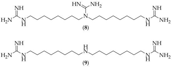 - Saczewski, F.; Balewski, Ł. Biological activities of guanidine compounds. Expert Opin. Ther. Pat. 2009, 19, 1417–1448. [Google Scholar] [CrossRef]