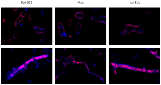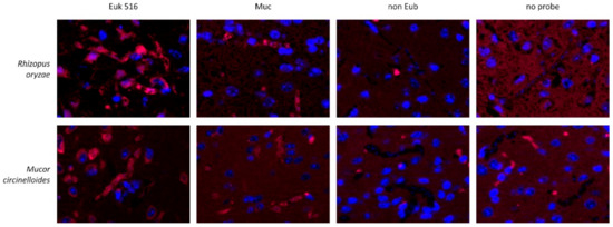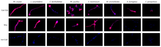 The following are available online at https://www.mdpi.com/article/10.3390/jof8030289/s1, Table S1: Characteristics of FISH probes, Table S2: Mismatches of the probes with fungi of the Zygomycetes, Table S3: Mismatches of probes with 18s rRNA of non-target fungi.