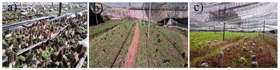 True morels (Morchella spp., Morchellaceae, Pezizales), as highly prized edible mushrooms, are of great economic and scientific value [,]. They are distinguished by their unique honeycomb-like appearance of hollow fruiting bodies and are widely distributed in temperate regions of the Northern Hemisphere [,]. Wild morels are enigmatic and ephemeral because they usually only bear fruit for a few weeks every spring, except for some autumnal species [,,]. For centuries, the fruiting bodies of morel have been used as food and, recently, it has been proved to be beneficial to health, especially in antibacterial, antioxidant, and anti-inflammatory properties [,]. These important qualities not only propel morel into a popular edible mushroom, but also lead to the increase in market demand and scarcity of wild resources. Given the above, the artificial cultivation industry of morel in Asia, especially in China, has been growing rapidly, which is helpful to alleviate the market pressure [,].