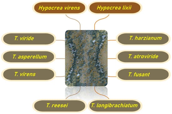 - Madbouly, A.K. Biodiversity of Genus Trichoderma and Their Potential Applications. In Industrially Important Fungi for Sustainable Development. Fungal Biology; Abdel-Azeem, A.M., Yadav, A.N., Yadav, N., Usmani, Z., Eds.; Springer: Cham, Switzerland, 2021; pp. 429–460. [Google Scholar]