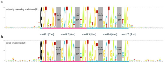 3.6. The AU Content in the Propagating Sister Stwintrons Is Higher Than in the Uniquely Occurring Stwintrons