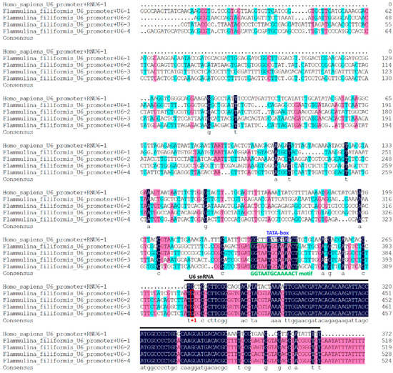 3.2. Four U6 Promoters of F. filiformis Were Identified Based on Homologous Search