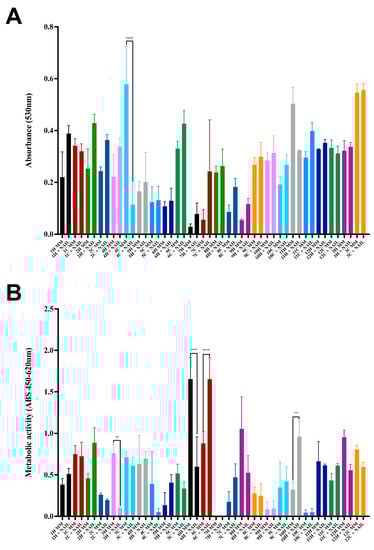 All experiments were performed in triplicate, in three independent experimental sets, except when strictly described before, and the results were expressed as mean ± standard deviation. The results were analyzed using the GraphPad Prism 9 software (La Jolla, San Diego, CA, USA), with p-values less than 0.05 to determine the significance. Non-parametric tests were used as appropriate and necessary in the different analyses and comparisons. The overall analysis of all virulence-related phenotypes was performed through a heat map constructed with the Heatmapper tool []. The correlation between the expression of different phenotypes by the same strain was assessed using Spearman’s correlation in GraphPad Prism 9 software.