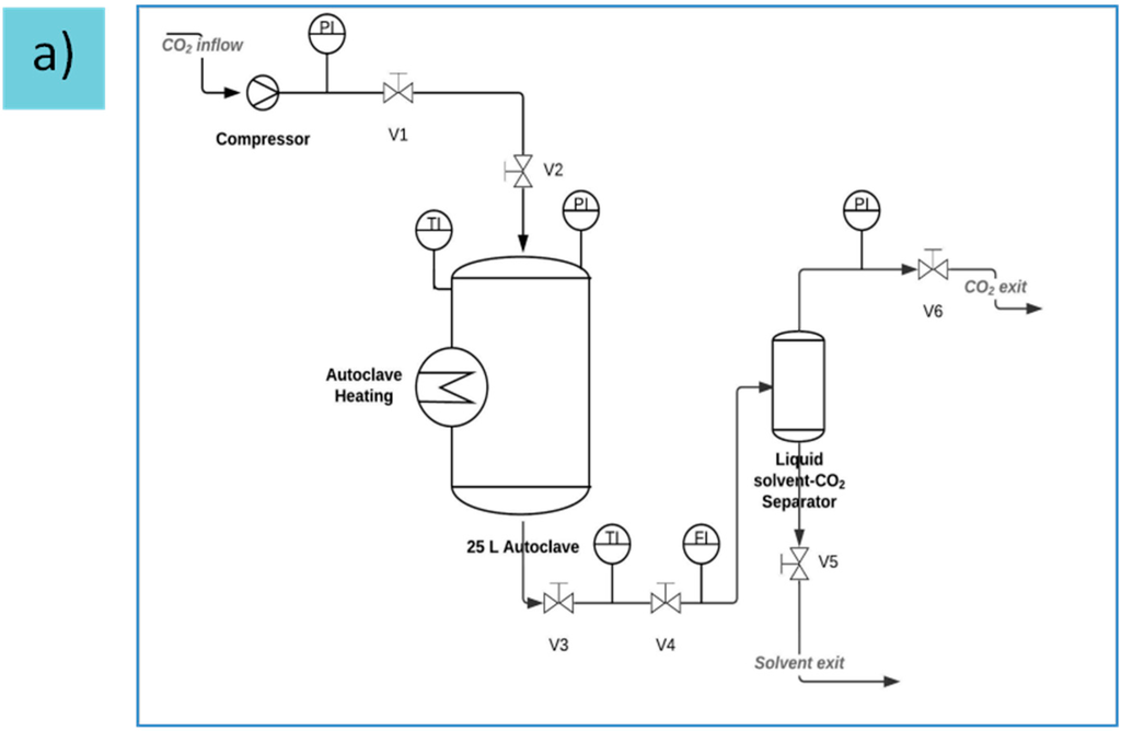 The organogels obtained via solvent exchange were wrapped in filter paper and placed in the same autoclave used for gelation (Figure 11a). A small amount of solvent was added into the autoclave to avoid evaporation of the solvent from the gels. Thereafter CO2, used as extraction medium, was pumped into the preheated autoclave (333–338 K) until a pressure of 12 MPa was reached. When the operating pressure was reached, the autoclave was flushed with one residence volume of CO2, resulting in the extraction of solvent from the autoclave. This process was repeated 5–6 times over a timespan of approximately 24 h to ensure complete drying. Depressurization took place over the period of approximately 1 h (approx. 0.2 MPa·min−1).