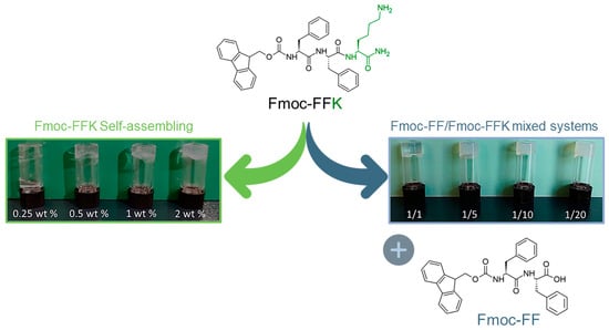 - Wang, Y.; Geng, Q.; Zhang, Y.; Adler-Abramovich, L.; Fan, X.; Mei, D.; Gazit, E.; Tao, K. Fmoc-diphenylalanine gelating nanoarchitectonics: A simplistic peptide self-assembly to meet complex applications. J. Colloid. Interface Sci. 2023, 636, 113–133. [Google Scholar] [CrossRef]