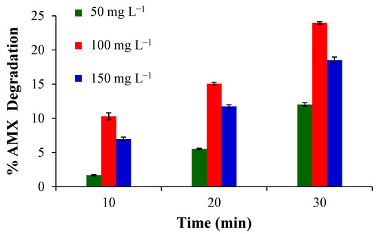 Amoxicillin (AMX) is an antibiotic of class β-lactam, which is considered safe for use even in pregnant and lactating women; however, its metabolization in the human body is low, whereby between 70 and 90% of AMX is released to the environment unchanged [6,7,8]. Due to its solubility, biodegradability, stability and polarity, AMX is not degraded completely in wastewater treatment plants; for this reason, different methods (adsorption, advanced oxidation processes, etc.) [9,10,11,12] for the removal of this antibiotic from waters have been proposed [13].