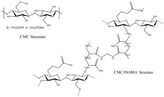 - Biswal, D.R.; Singh, R.P. Characterisation of Carboxymethyl Cellulose and Polyacrylamide Graft Copolymer. Carbohydr. Polym. 2004, 57, 379–387. [Google Scholar] [CrossRef]