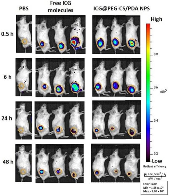 - Chen, Y.H.; Liu, I.J.; Lin, T.C.; Tsai, M.C.; Hu, S.H.; Hsu, T.C.; Wu, Y.T.; Tzang, B.S.; Chiang, W.C. PEGylated chitosan-coated nanophotosensitizers for effective cancer treatment by photothermal-photodynamic therapy combined with glutathione depletion. Int. J. Biol. Macromol. 2024, 266, 131359. [Google Scholar] [CrossRef] [PubMed]