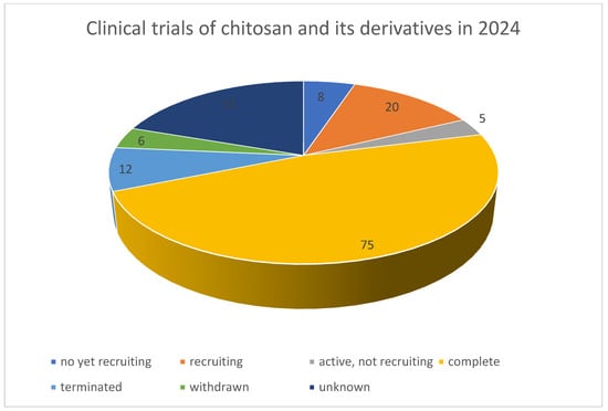 - Kantak, M.N.; Bharate, S.S. Analysis of clinical trials on biomaterial and therapeutic applications of chitosan: A review. Carbohydr. Polym. 2022, 278, 118999. [Google Scholar] [CrossRef]