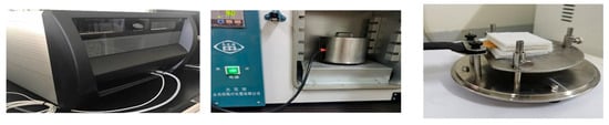 Thermal conductivity refers to the stable heat transfer conditions: 1 m thickness of the material, 1 K difference for both sides of the surface temperature. In 1 s through the 1 square meter area of heat transfer, the Hot Disk based on the transient planar heat source method’s probe is a power output source. Also, the temperature detector, the sample and the probe are composed of sandwich mode (see Figure 11), and the probe circular coil part in the pressurized screws is directly under the two samples of the whole side of the probe clamped to ensure that there is no gap as far as possible when a stable value is reached according to the Fourier diffusion thermal conductivity equation calculations to get the thermal conductivity coefficient of the material [31].