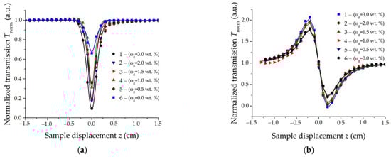 Figure 1. Results of measurements by Z-scan method: (a) With open aperture; (b) With closed aperture.