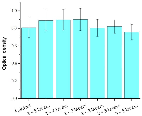 Figure 5. Results of the MTT test of polymerized samples after 72 h of cultivation.
