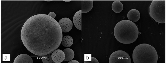 It was found that the average diameter of MS-1 was 299 µm and of MS-2 was 75 µm. The sizes of MS-2 were within a narrower range, while the diameters of MS-1 had a much larger deviation. Therefore, at the same mass of spherical PHB particles, the number of microspheres without macroscopic pores, i.e., MS-2 matter, will be greater than the number of MS-1 particles with macroscopic pores.