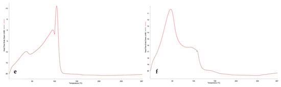 DSC thermograms of the formulations: (a) LG1; (b) LG2; (c) LG3; (d) LG4; (e) LG5; (f) LG6.