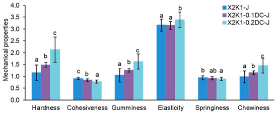 | Gumminess | 28 ± 20 a | 26 ± 19 a |