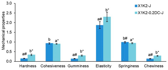 | G′LVE (Pa) | 344.5 ± 1.8 a* | 613.7 ± 28.5 b | 773.4 ± 17.4 cα | 417.1 ± 7.0 1# | 806.6 ± 27.0 2β |