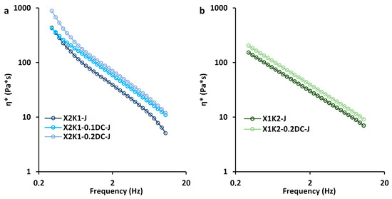 | η*s (Pa·s) | 85.2 ± 15.7 a* | 115.9 ± 13.8 b | 156.6 ± 26.6 cα | 56.8 ± 3.5 1# | 64.3 ± 4.5 1β |