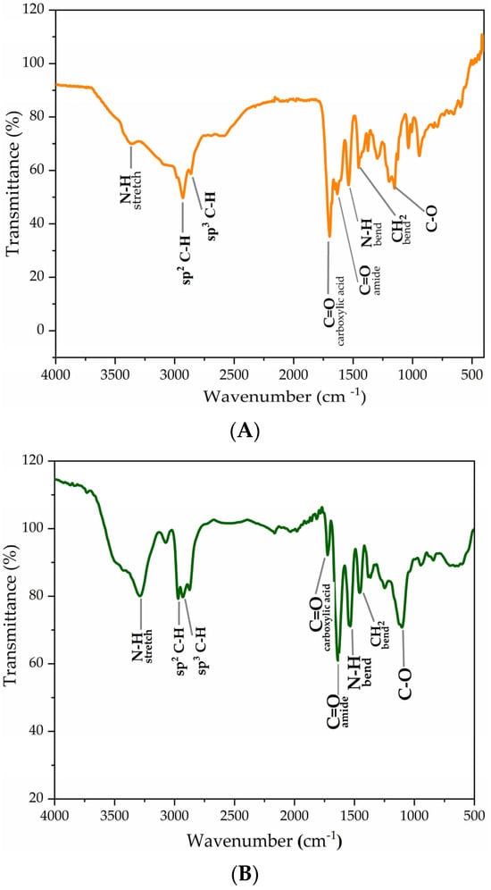 The infrared spectra were determined using a Fourier Transform Infrared spectrophotometer (FT-IR) Thermo Scientific™ Nicolet™ iS™5 with an attenuated total reflectance (ATR) module, using the direct method at room temperature. Samples of freeze-dried microgels were analyzed [].