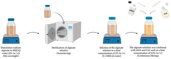 - Chen, Y.; Zhou, Y.; Wang, C. Investigation of Collagen-Incorporated Sodium Alginate Bioprinting Hydrogel for Tissue Engineering. J. Compos. Sci. 2022, 6, 227. [Google Scholar] [CrossRef]