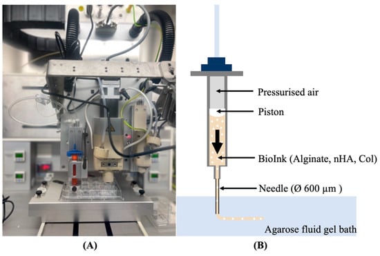 - Melo, P.; Montalbano, G.; Fiorilli, S.; Vitale-Brovarone, C. 3D Printing in Alginic Acid Bath of In-Situ Crosslinked Collagen Composite Scaffolds. Materials 2021, 14, 6720. [Google Scholar] [CrossRef] [PubMed]