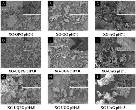 | XG-AG (pH 7.0) | 930.51 ± 23.56 d | 144.11 ± 2.72 b | 393.20 ± 13.14 d |