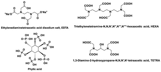 - Bretti, C.; Cigala, R.M.; De Stefano, C.; Lando, G.; Sammartano, S. Interaction of Phytate with Ag+, CH3Hg+, Mn2+, Fe2+, Co2+, and VO2+: Stability Constants and Sequestering Ability. J. Chem. Eng. Data 2012, 57, 2838–2847. [Google Scholar] [CrossRef]