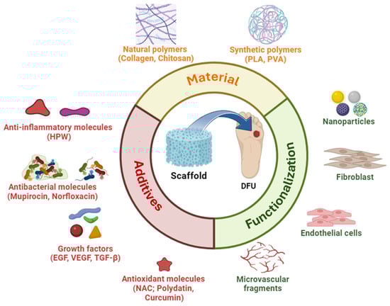 - Chaudhari, A.A.; Vig, K.; Baganizi, D.R.; Sahu, R.; Dixit, S.; Dennis, V.; Singh, S.R.; Pillai, S.R. Future Prospects for Scaffolding Methods and Biomaterials in Skin Tissue Engineering: A Review. Int. J. Mol. Sci. 2016, 17, 1974. [Google Scholar] [CrossRef] [PubMed]