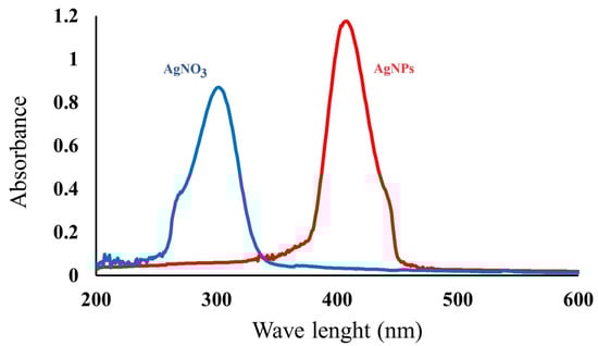 UV–Vis spectrum of AgNO3 and AgNPs.