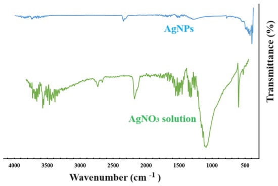FT-IR spectra of AgNPs and AgNO3 solution.