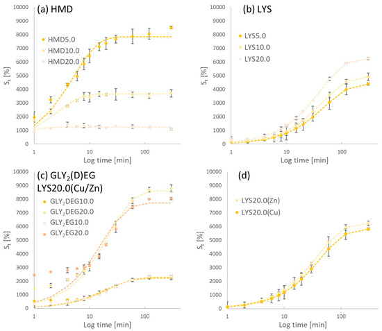 2.2.2. Swelling Properties of clPASP Hydrogels