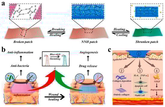 - Chen, C.; Wang, Y.; Zhang, H.; Zhang, H.; Dong, W.; Sun, W.; Zhao, Y. Responsive and self-healing structural color supramolecular hydrogel patch for diabetic wound treatment. Bioact. Mater. 2022, 15, 194–202. [Google Scholar] [CrossRef]