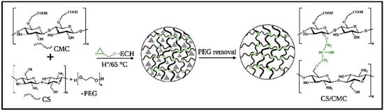 Figure 7. Preparation of CS/CMC-PEG hydrogels. Reproduced with permission from [84].