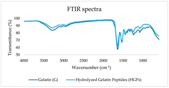 FTIR spectra of gelatin (G) and hydrolyzed gelatin peptides (HGPs).