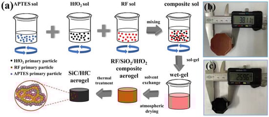 2.1. Synthetic Route of SiC/HfC Composite Aerogel