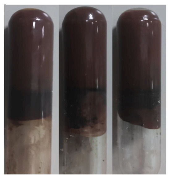 Upon undergoing a cross-linking reaction at elevated temperatures, the glue liquid transformed into a gel, exhibiting a dark brown color and possessing a strength rating of H, as depicted in Figure 8.