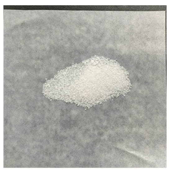 AMPS and AM, with mass fractions of 20% and 80%, respectively, were combined at room temperature in a beaker. Distilled water, with a mass fraction of 80%, was added and stirred until both monomers were completely dissolved. The pH of the solution was modified to a range of 6 to 7 using a concentrated solution of sodium hydroxide. Subsequently, the solution was moved to a water bath maintained at a constant temperature of 40 °C. Once the temperature of the solution reached a steady state, ammonium persulfate was added, and then the reaction was maintained at a constant temperature for a duration of 12 h. Ultimately, the substance underwent purification using anhydrous ethanol and was thereafter dried at a temperature of 40 °C, resulting in the acquisition of white granular particles (Figure 10).