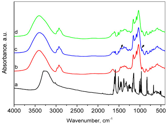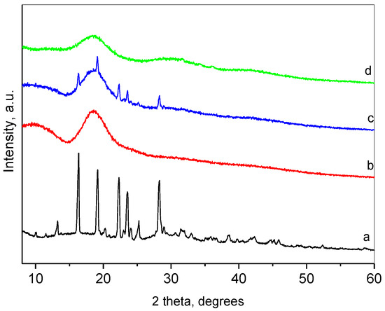 - Timaeva, O.; Pashkin, I.; Mulakov, S.; Kuzmicheva, G.; Konarev, P.; Terekhova, R.; Sadovskaya, N.; Czakkel, O.; Prevost, S. Synthesis and Physico-Chemical Properties of Poly(N-Vinyl Pyrrolidone)-Based Hydrogels with Titania Nanoparticles. J. Mater. Sci. 2020, 55, 3005–3021. [Google Scholar] [CrossRef] [PubMed]