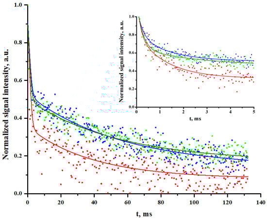 After the cleaning procedure with CS-Ox, the decay signal (green curve) appears restored and overlaps almost completely with the reference signal. The differences highlighted here could be better appreciated in the inset of Figure 2, in which the decay signals in the first 5 ms are shown.
