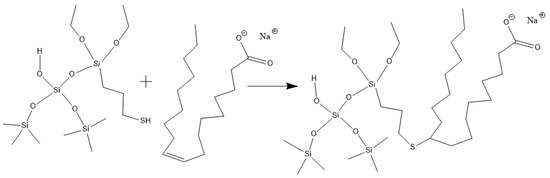 Route of integrating sodium oleate to the mercapto-terminated nano-silica.