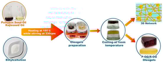 The method described by Silva et al. [33] was applied with a few modifications to prepare oleogels. Figure 8 presents a schematic representation of oleogel preparation.