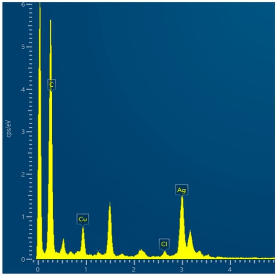 The analysis of the EDX (Figure 3) showed the presence of Ag and Cl elements, which were related to the precipitation of AgCl.
