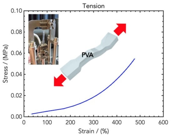Natural and synthetic polymers are often used as wound dressing materials []. Among them, poly(vinyl alcohol) (PVA), a water-soluble long-chain polymer obtained by the alcoholysis, hydrolysis, or ammonolysis of poly vinyl acetate, is a biocompatible and partially biodegradable material; it has high water absorption and good mechanical properties, e.g., a high elastic modulus and high mechanical strength [,].