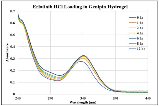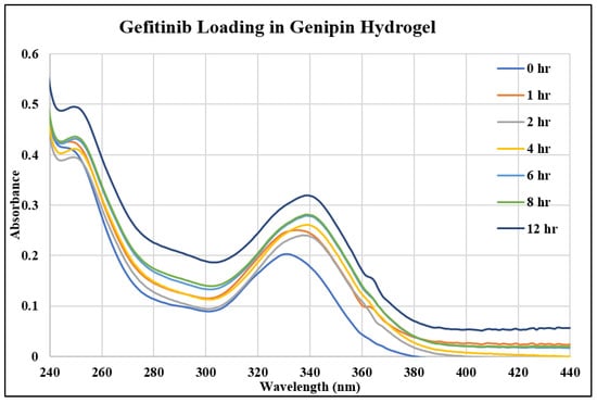 18]. Tong et al. formulated numerous solutions with varying concentrations and observed the peak profiles against logarithmic concentrations for shifting peaks of absorption, which is beyond the scope of this study. Therefore, we focused on analyzing the drug loading and release characteristics of these developed gels by the ratio of absorption