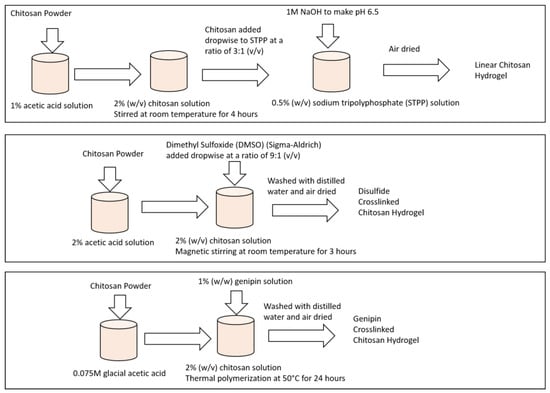 10]. Chitosan is made from chitin—a natural polymer that is found in the shells of crustaceans, such as crabs, shrimps, and lobsters. Chitosan hydrogels have been widely studied for their potential applications in wound healing, tissue engineering, and drug delivery. Chitosan hydrogels have several properties that make them attractive for these applications. For example, they are biocompatible, biodegradable, and non-toxic, which makes them suitable for use in biological systems. They are also mucoadhesive, which means they can adhere to mucosal surfaces in the body, such as the lining of the gastrointestinal tract or the skin. Chitosan hydrogels have been used to promote wound healing in both animal models and human clinical trials. They have been shown to promote cell proliferation and migration to enhance the formation of new blood vessels, which is important for tissue regeneration. They enhance the absorption of drugs across mucosal surfaces, such as the gastrointestinal tract, due to their mucoadhesive properties. Chitosan hydrogels have been used for the delivery of a wide range of drugs, including small molecules, proteins, and nucleic acids. They can be prepared using a variety of techniques, including physical crosslinking, chemical crosslinking, and ionic gelation. In ionic gelation, chitosan is crosslinked with a polyanion such as sodium tripolyphosphate to form a hydrogel [