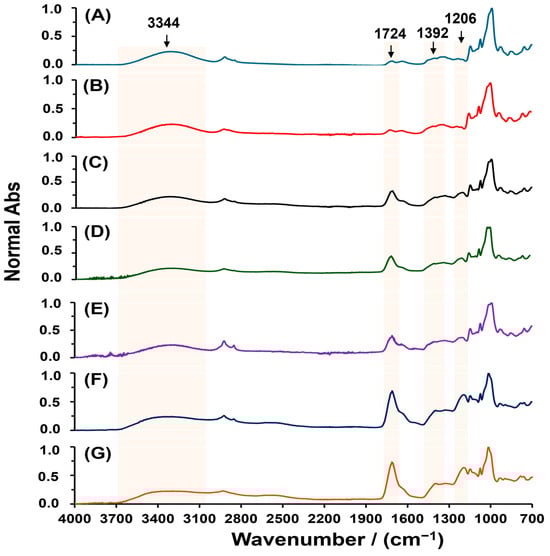 - Nikonenko, N.A.; Buslov, D.K.; Sushiko, N.I.; Zhbankov, R.G. Investigation of Stretching Vibrations of Glycosidic Linkages in Disaccharides and Polysaccarides with Use of IR Spectra Deconvolution. Biopolymers 2000, 57, 257–262. [Google Scholar] [CrossRef] [PubMed]