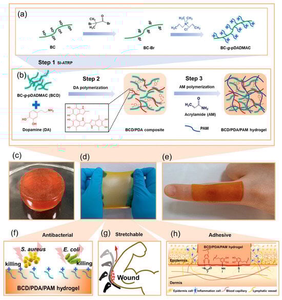 - Wang, Q.; Feng, X.; Xu, H.; Guo, G.; Li, Y.; Zhang, Q. Recent progress of antibacterial hydrogel materials for biomedical applications. J. Mater. Chem. C 2023, 11, 12848–12876. [Google Scholar] [CrossRef]