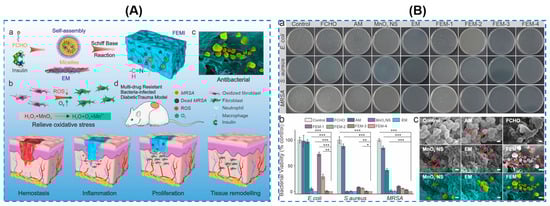 - Cheng, H.; Shi, Z.; Yue, K.; Huang, X.; Xu, Y.; Gao, C.; Yao, Z.; Zhang, Y.S.; Wang, J. Sprayable hydrogel dressing accelerates wound healing with combined reactive oxygen species-scavenging and antibacterial abilities. Acta Biomater. 2021, 124, 219–232. [Google Scholar] [CrossRef]