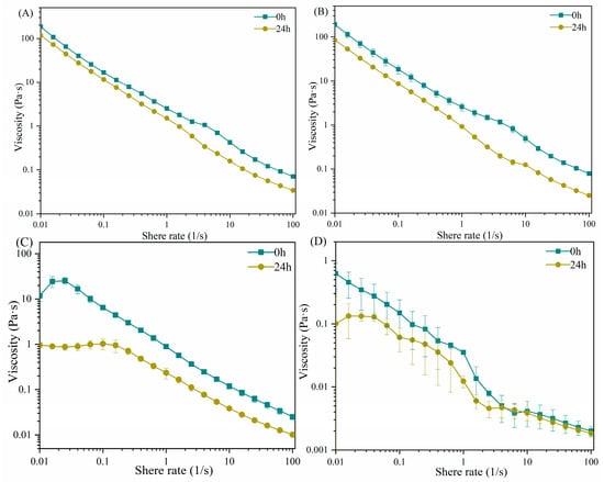 The apparent viscosity of fermentation medium: (A) carrageenan (C107615), (B) κ-carrageenan, (C) ι-carrageenan, (D) λ-carrageenan.