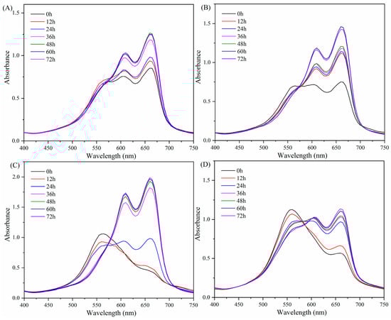 Methylene blue wavelength scanning curve of fermentation medium, with a wavelength interval of 5 nm: (A) carrageenan (C107615), (B) κ-carrageenan, (C), ι-carrageenan (D) λ-carrageenan.