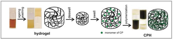 Schematic illustration for the synthesis of a CPH comprised of an accompanying polymer and CPs [70]. Copyright 2019, MDPI.